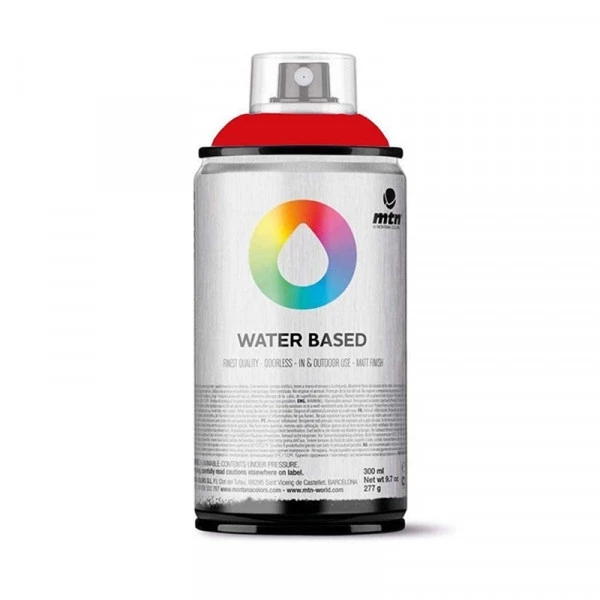 - La MTN Water Based 300 est la première bombe de peinture destinées aux artistes, dont les solvants à base de pétrole sont remplacés par de l’eau. La formule combine des résines hydrosolubles à très faible odeur, avec des pigments de très haute qualité. Le gaz propulseur utilisé est l’éther méthylique, également utilisé dans la cosmétique.