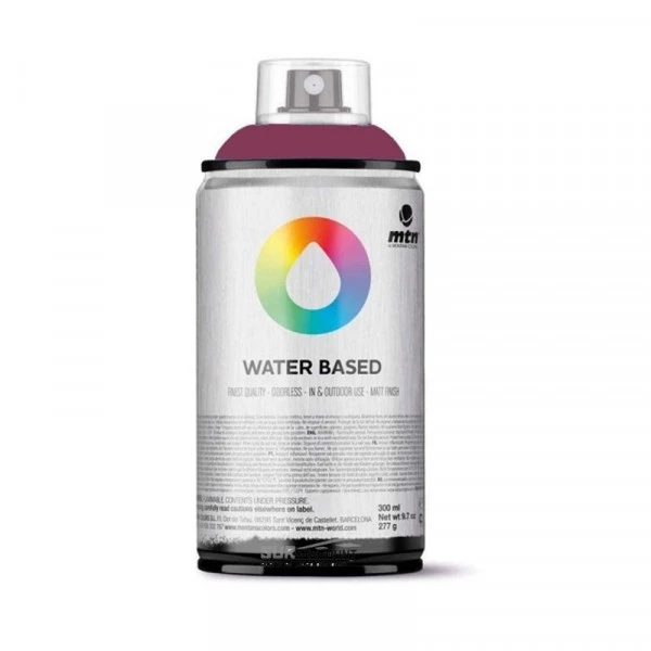 - La MTN Water Based 300 est la première bombe de peinture destinées aux artistes, dont les solvants à base de pétrole sont remplacés par de l’eau. La formule combine des résines hydrosolubles à très faible odeur, avec des pigments de très haute qualité. Le gaz propulseur utilisé est l’éther méthylique, également utilisé dans la cosmétique.