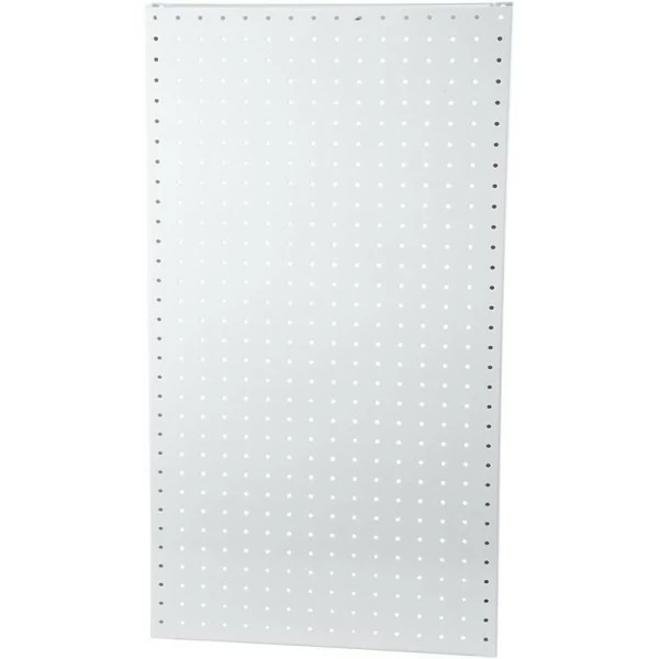 Plaque arrière perforée pour présentoir, peinte en blanc.