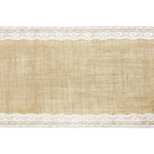 Matériauchemin de table 100 % jute, dentelle 100 % polyester