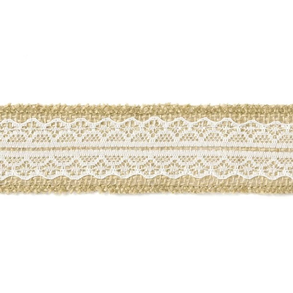 Ruban décoratif composé de ruban de jute et ruban de dentelle / ruban cadeau jute – ruban noeud / ruban toile de jute avec dentelle blanche au milieu