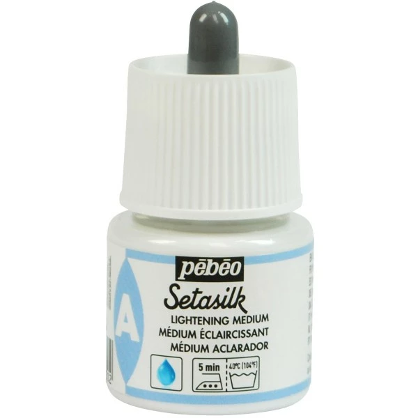 Cet auxiliaire peinture sur soie est un médium éclaircissant pour les couleurs Peinture Pébéo Setasilk pour créer des tons plus clairs sans détériorer leurs propriétés de tenue au lavage.