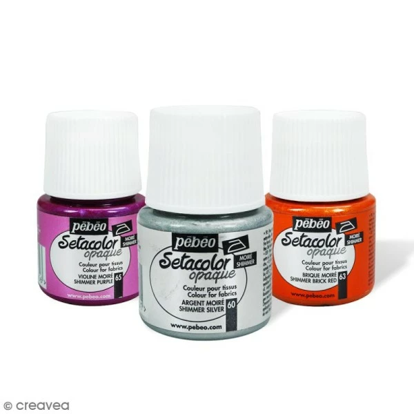 La peinture Setacolor Moiré (de Pébéo), vous permettra de colorer vos supports textiles de manière efficace et professionnelle. Les couleurs Setacolor opaques moirées sont des teintes riches et profondes. Scintillantes, elles présentent un éclat subtil aux reflets changeant en fonction de la lumière !