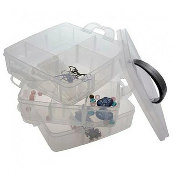 Une boîte de rangement idéale pour tous types d’accessoire avec 3 étages de 6 compartiments modulables de 7,2×4,3cm pour une hauteur de 3 cm. Très pratique avec sa poignée de transport.