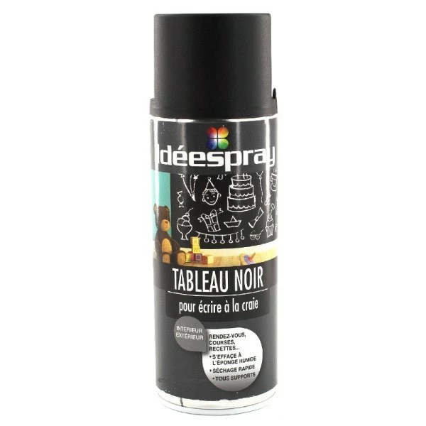 Une bombe de peinture qui permet de créer des espaces d’écriture à la craie pour vos notes, emploi du temps, dessin, etc. Elle s’utilise sur de nombreux supportsbois, métal, plastique, carrelage, carton, etc. mais aussi sur le frigo, les armoires, les portes et pourquoi pas les murs. Créer ainsi vos espaces d’expression dans toutes les pièces de votre intérieur. Elle s’utilise également à l’extérieur pour le potager ou le jardin.